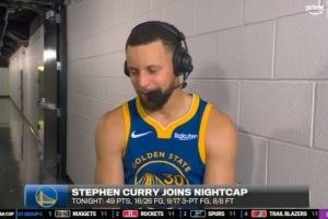 体育资讯11月15日讯 NBA杯,勇士109-108击败马刺,赛后库里连线接受采访。